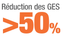 Réduction des émissions de GES > 50%